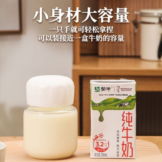 小奶杯迷你玻璃杯耐高温摇摇杯健身水壶水杯女ins便携刻度牛奶杯 升级提手蓝色+隔热杯套 420ml