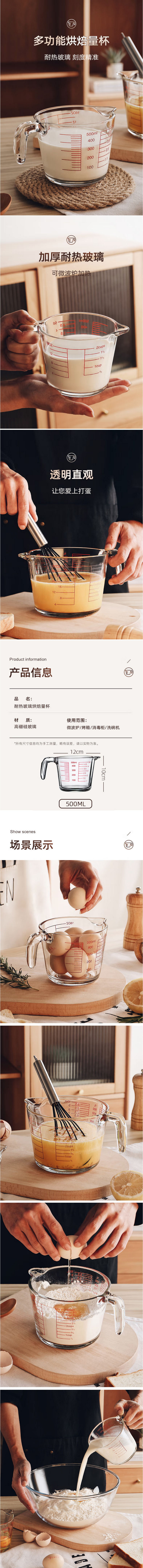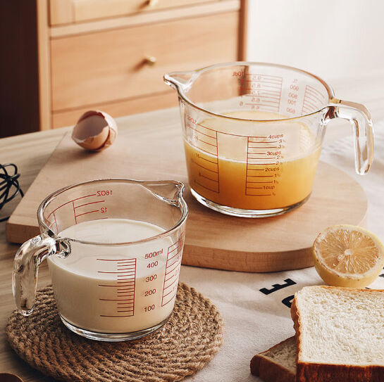 牛奶杯家用带刻度耐热玻璃杯子烘焙量杯儿童早餐杯