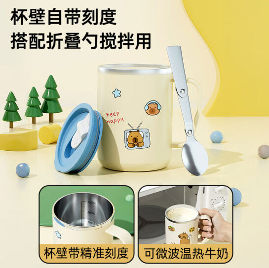 防摔儿童牛奶杯不锈钢带刻度吸管水杯家用宝宝喝奶杯冲奶粉专用